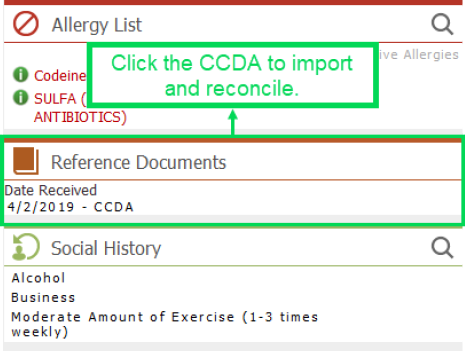 See the following sections for step-by-step instructions on receiving and reconciling CCDAs: