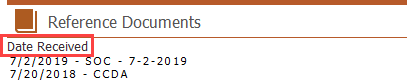 The Reference Documents section allows you to receive CCDA documents from external sources and add them to a patient’s Facesheet without importing the information directly into the chart. Although you can add documents to the Reference Documents when the section is not included on the Facesheet, it does make the process easier.