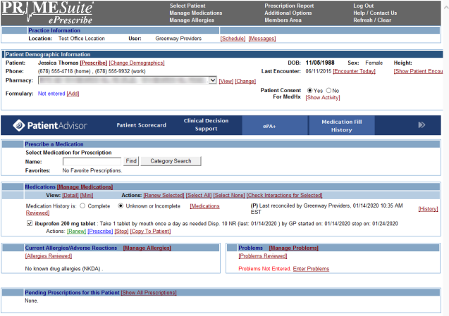 In addition to being set up to electronically prescribe, to prescribe controlled substances electronically, you must also complete the EPCS Registration and Onboarding process, which includes being set up with DrFirst, our EPCS partner. For more information on this process, please contact your Greenway Prime Suite sales representative. The eRx Configuration for EPCS Clients topic in the Prime Suite help system provides additional information.