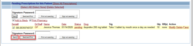 - If you are a provider, enter your signature password and select Send or Send and Print.