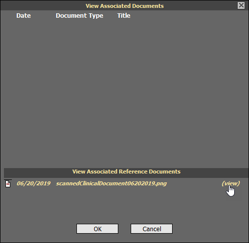 | 3. | Select the Associated Documents link to open the View Associated Documents window. Attachments are found under View Associate Reference Documents at the bottom of the window. |