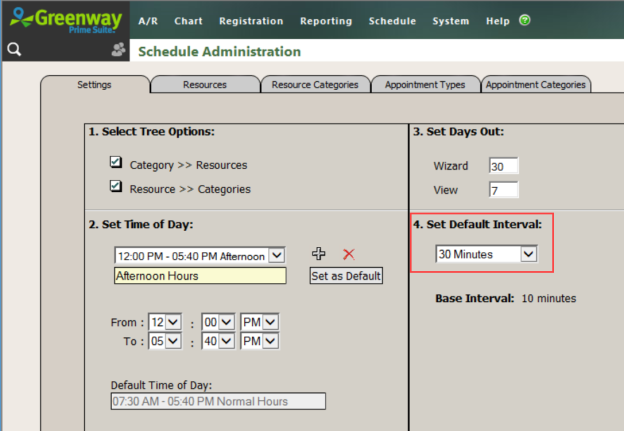 If a visit is not checked out, Prime Suite uses the Default Interval specified in Schedule Administration to determine the time to use as the end of the visit for calculations. The visit remains in a checked-in status.